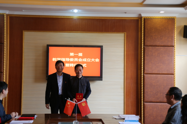 党委书记张文洲首先宣读学院第一届教学指导委员会名单,并为主任委员苏建勇颁发聘书。院长苏建勇为教学指导委员会其他成员颁发聘书。