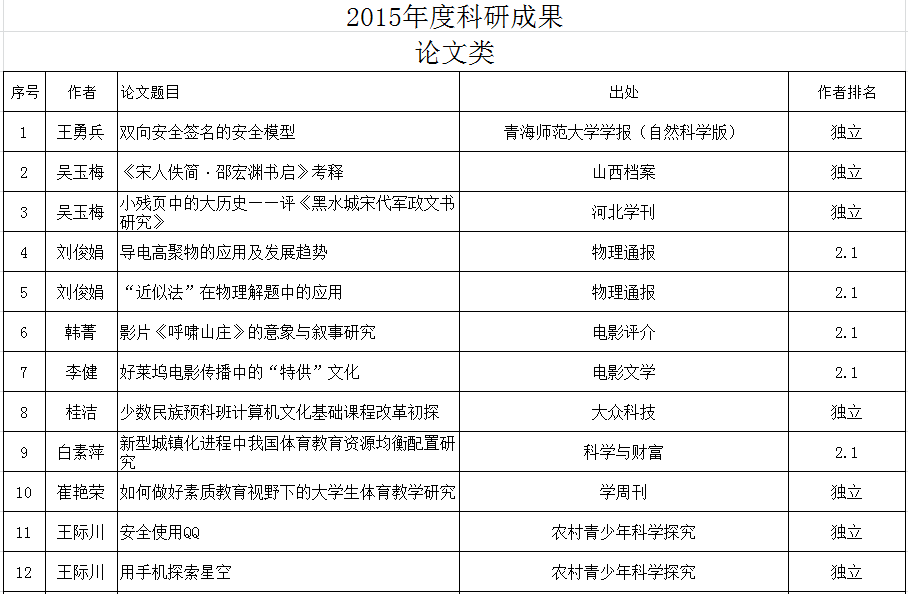 2015年科研成果