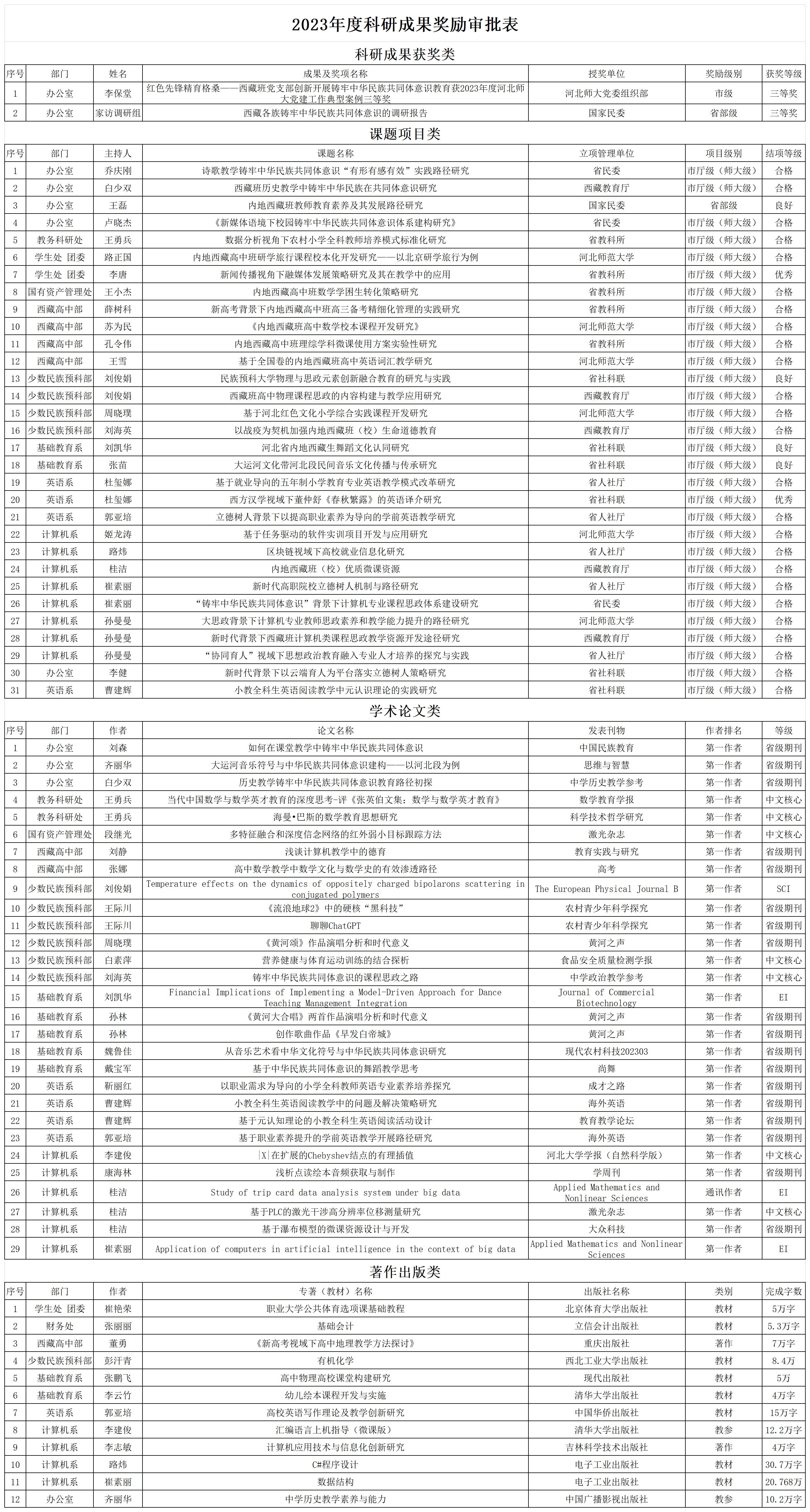 2023年科研奖励