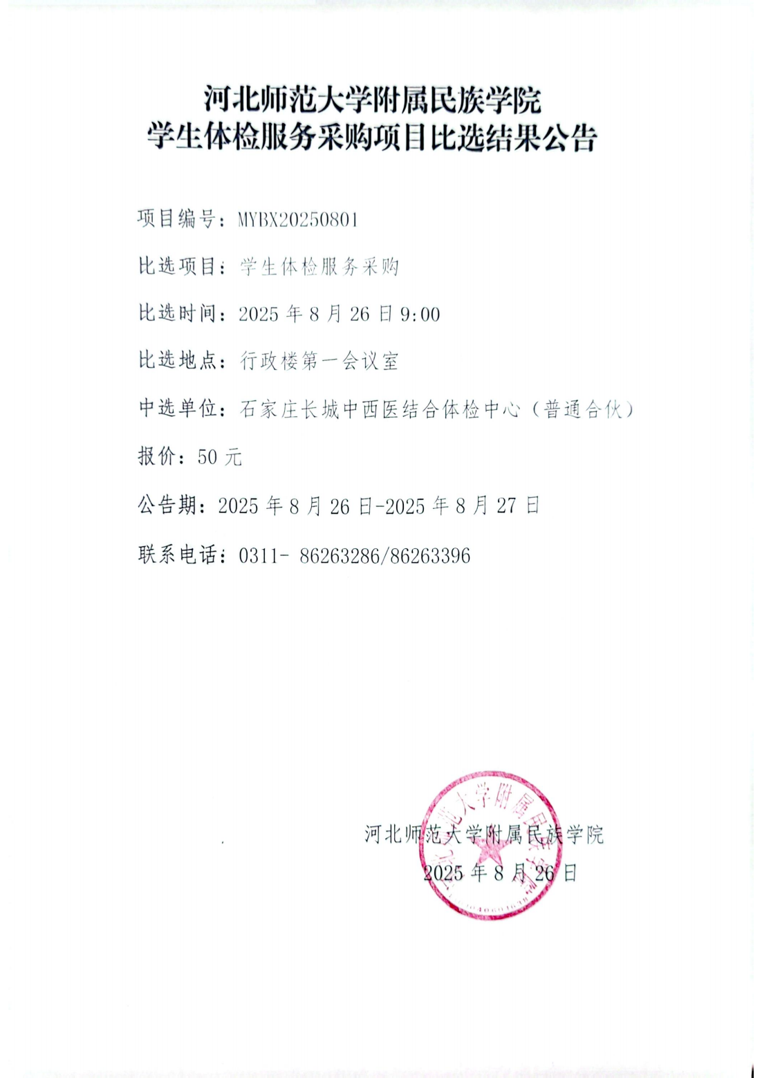 beat365中文在线官网学生体检服务采购项目比选结果公告