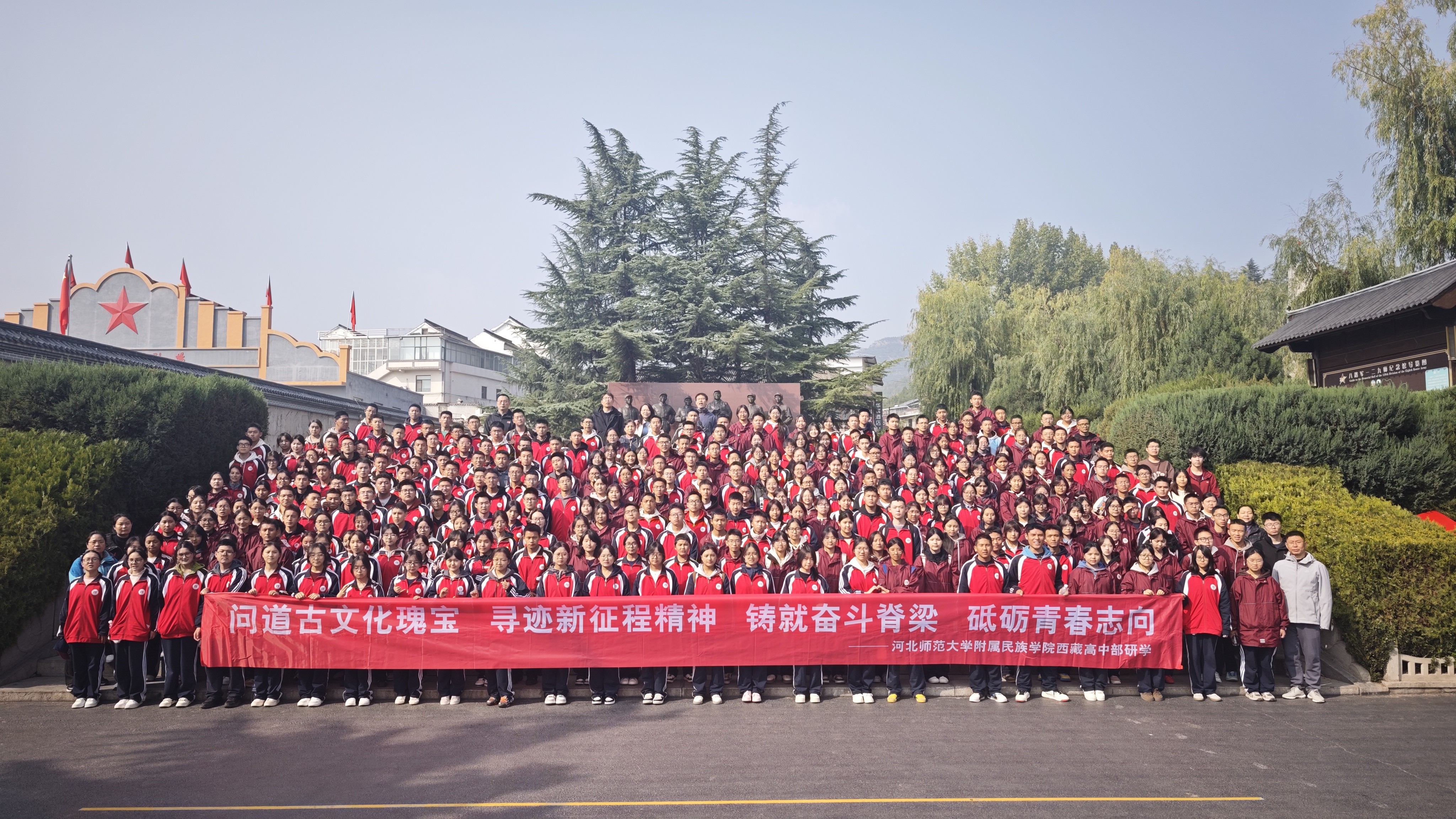 今年是中国人民抗日战争暨世界反法西斯战争胜利80周年。为传承红色基因,弘扬伟大抗战精神,铸牢中华民族共同体意识,10月25日至27日,beat365西藏班组织高一和高二学生分别赴邯郸、林州、保定,开展为期三天的红色立体研学活动。党委书记白少双、副院长李保堂、乔庆刚、安全工作处主任周立刚及西藏班管理团队、任课教师共30余人全程参与。