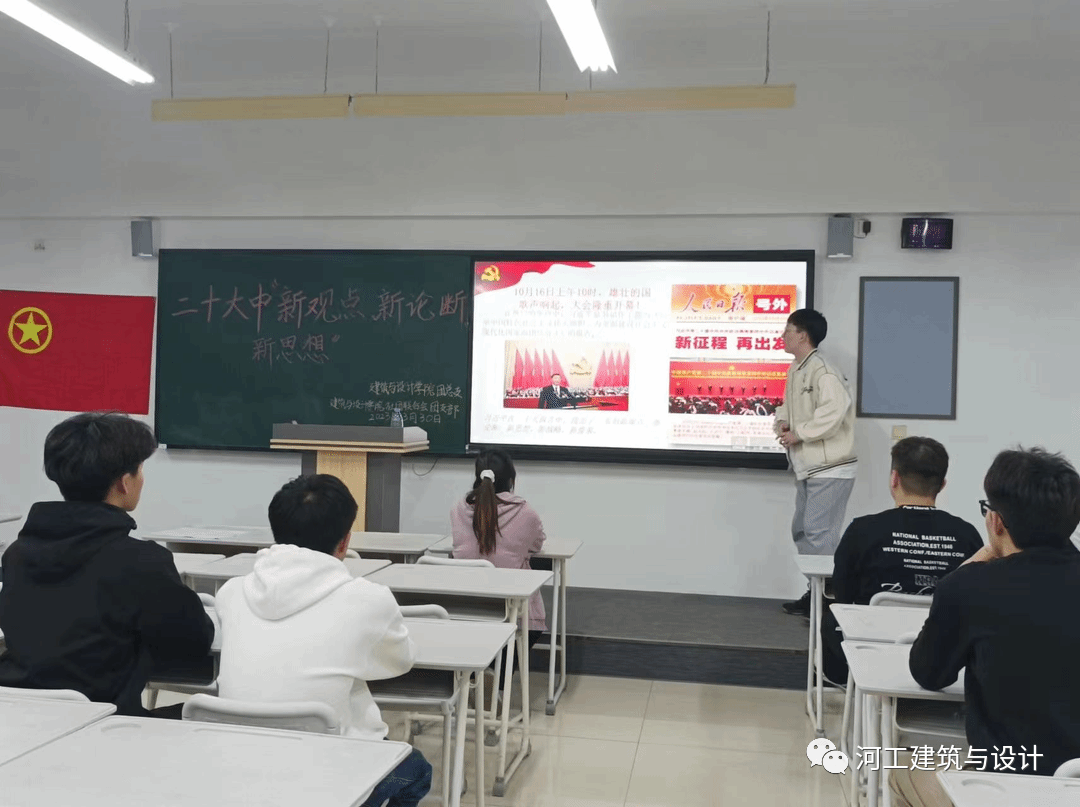 3月30日,建筑与设计学院社团联合会秉持着“永远跟党走,不忘初心,牢记使命”的信念精神在主教507举办学习二十大报告中的新观点、新论断、新思想的活动,和同学们一同学习并领悟二十大精神。