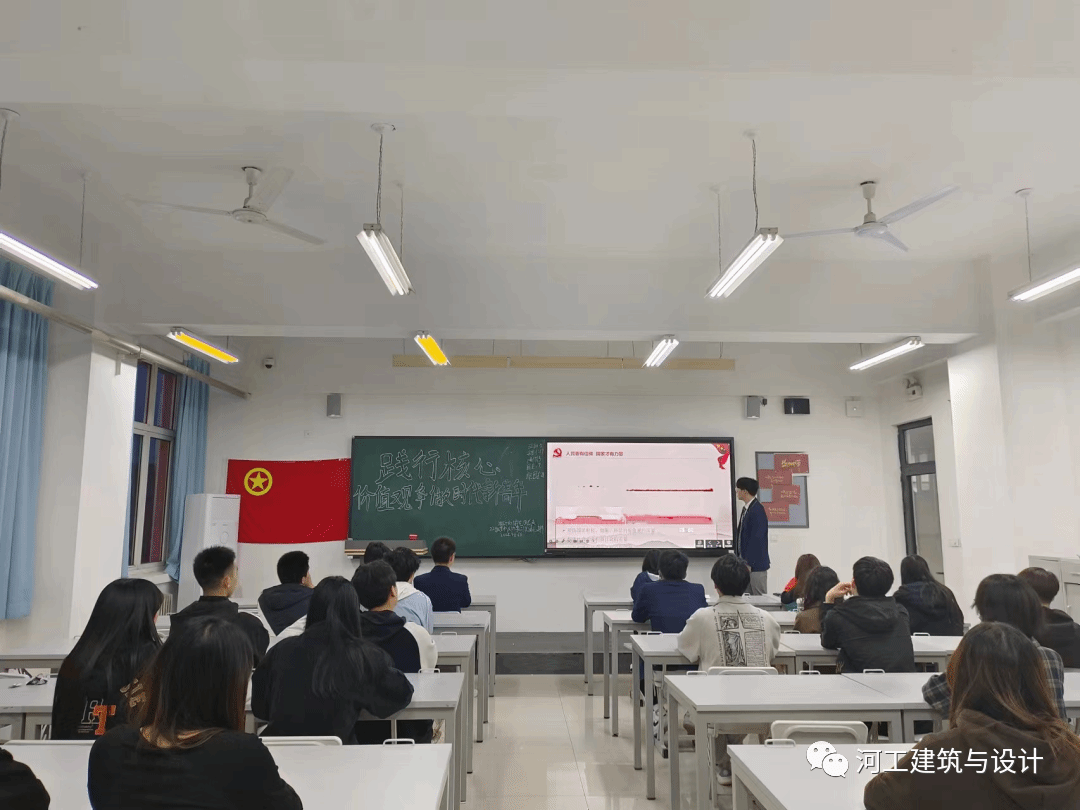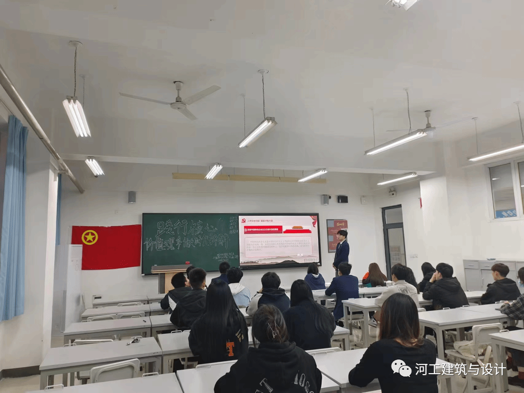 为了深入学习贯彻党的二十大精神,进一步加强大学生爱国主义教育,培育和践行社会主义核心价值观,鼓励广大学生坚定不移听党话,不忘初心跟党走,砥砺奋进,增长本领,为全面建设社会主义现代化国家贡献青春力量。特此,建筑与设计学院团务部于4月6日举办“践行社会主义核心价值观,争做时代新青年”的主题团课活动。