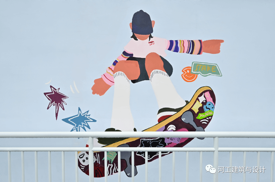 近日,在河北工程技术学院轮滑场多了一道靓丽风景线,建筑与设计学院与“红色合伙人”22级、21级各班携手开展“运动·健康”手绘墙主题活动。现场,在建筑与设计学院学生志愿者共同参与和精心创作下,百米手绘文化墙成功“出炉”,一幅幅形象生动、色彩绚丽、形式新颖的画面呈现在大家面前,赚足了“眼球”,赢得了称赞。
