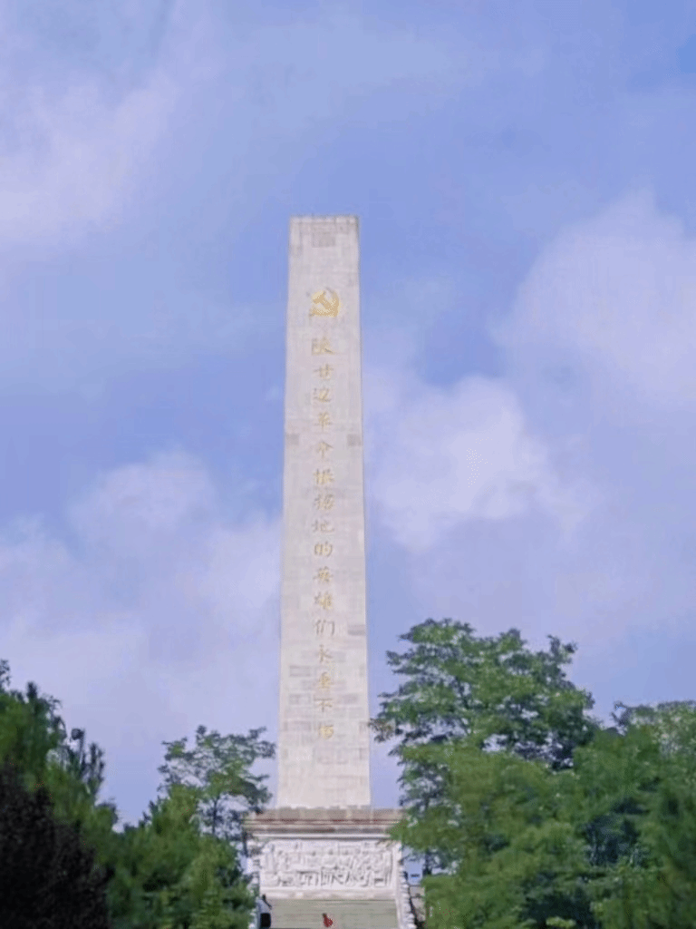下午实践小队到达陕甘边革命根据地纪念馆,纪念馆内以陕甘边革命根据地历史为主线,用详实的历史资料、图片、文物和各种现代化展陈技术再现了创建以照金为中心的陕甘边革命根据地的艰难历程。参观完纪念馆后,实践团前往参观馆后设立的陕甘边革命英雄纪念碑,高大的纪念碑上刻着“陕甘边革命根据地的英雄永垂不朽”的大字,其下雕刻着四幅具有象征意义的石画;于碑下,革命先烈之形象愈加伟岸雄壮。