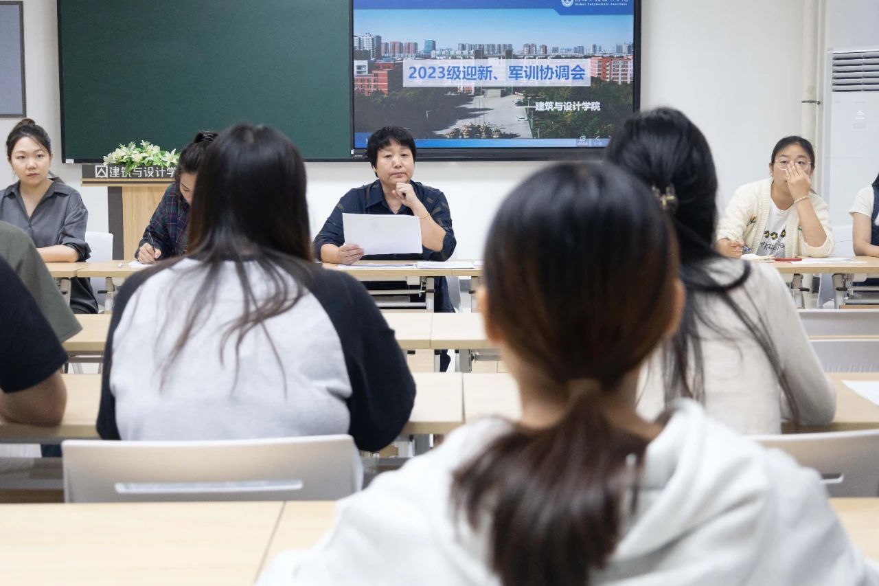 9月7日下午建筑与设计学院在主教602召开了建筑与设计学院迎新、军训协调会。建筑与设计学院党总支书记兼任学管副院长张玲玲、学管办、就业办、团总支、全体辅导员、学生代表 、志愿者代表、军训教官参加此次会议。