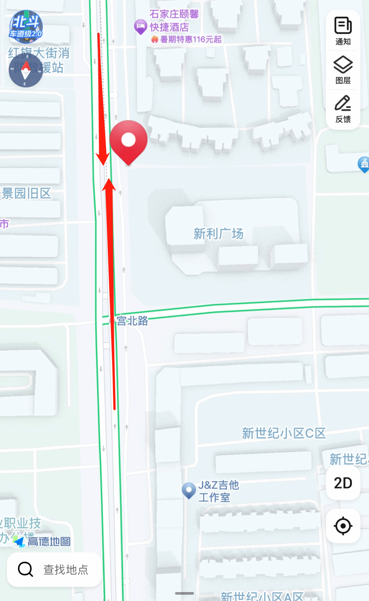 从滨河街驶入宫北路,按照箭头指示方向进入新利广场地下停车场入口。
