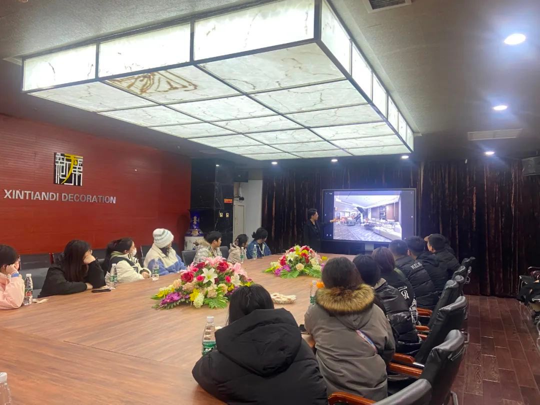 2023年11月29日下午,建筑与设计学院师生到新天第装饰公司进行参观交流学习,就居住空间方向的毕业设计进行详细的沟通与探讨。