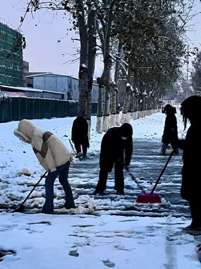 在马路上清扫冰雪,带来属于河工的温暖