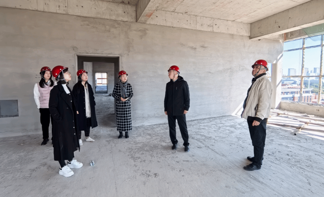 石家庄市一建建设集团有限公司对本次调研给予了高度重视。在仰岭科技大厦在建项目现场,项目负责人赵晓峰部长、石家庄市长安区云帆职业培训学校王鑫校长及项目管理人员热情接待了调研小组。双方首先在项目会议室进行了深入交流,就2024级土木工程专业认识实习的具体安排、参观流程、现场讲解内容以及实习安全等问题进行了细致商定。随后,调研小组一行实地参观了仰岭科技大厦项目的施工现场,对项目的施工进展和现场管理有了直观了解。