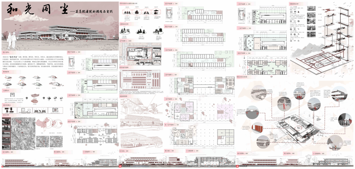 《和光同尘—某高校的建筑构思与实践》 作者/王颖,陈欣然 指导教师/张朝,谷雨 荣获省赛一等奖