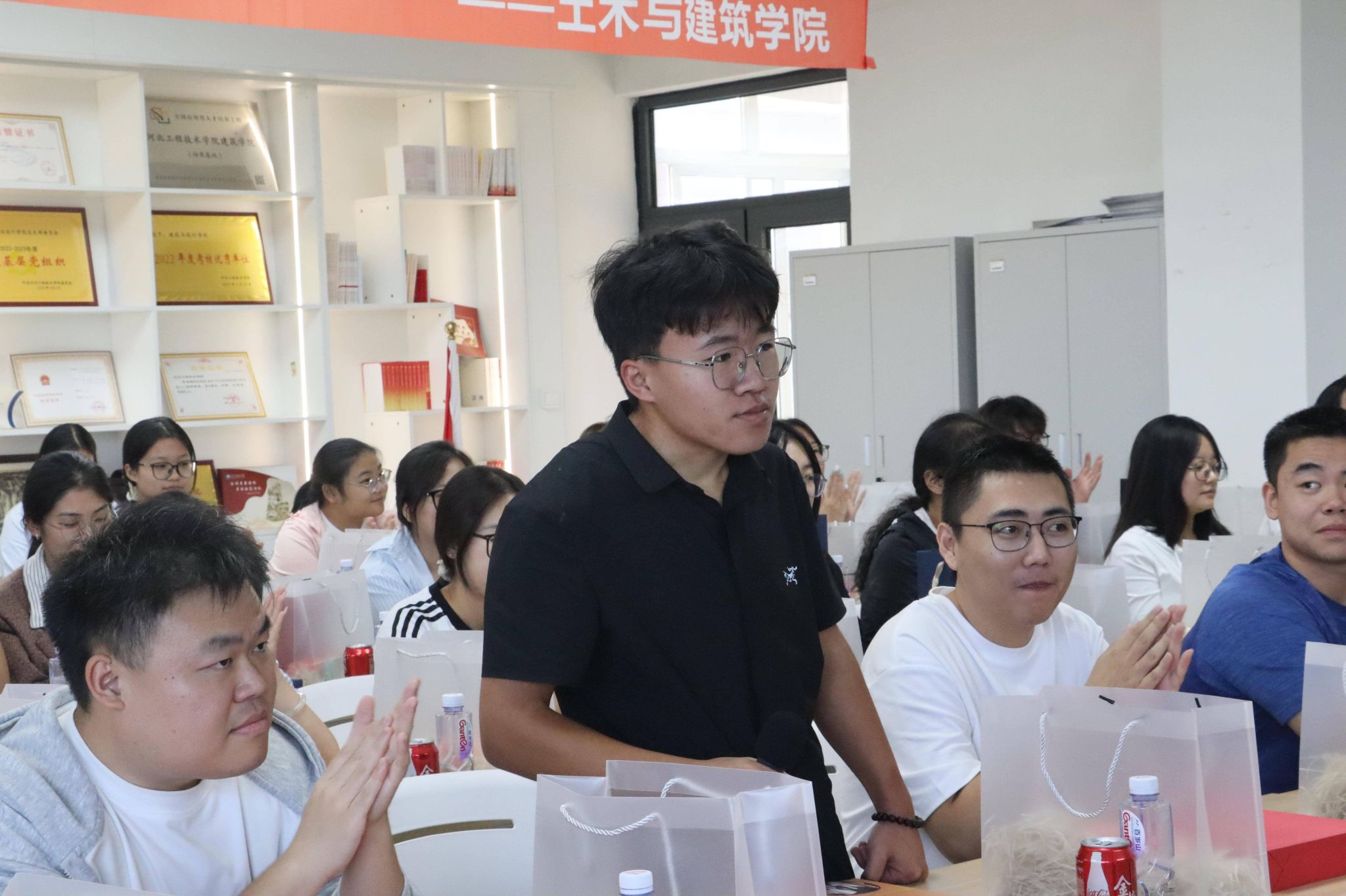 与会领导为考研学子代表赠送礼包