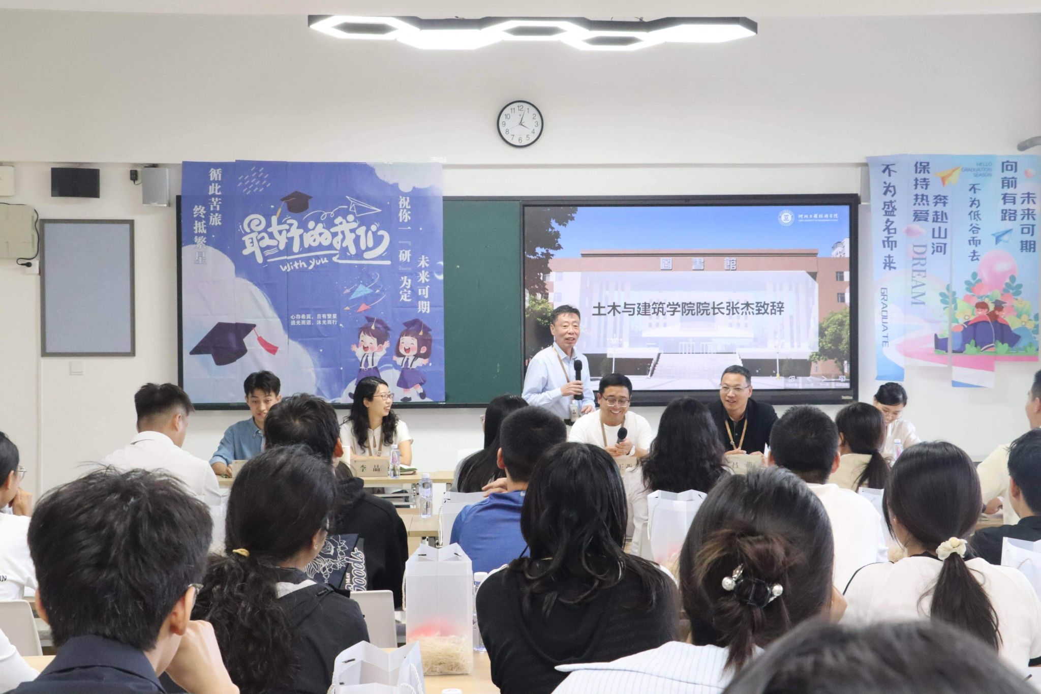 “研路同行,离不开学院的支持;共赴山海,更需要师长的引航”。座谈会伊始,张杰院长为活动致辞。他肯定了同学们备战考研的决心与毅力,强调学院始终将学生成长放在首位,将全力为考研学子提供资源支持与学业指导,并寄语同学们“行远自迩,笃行不怠”。