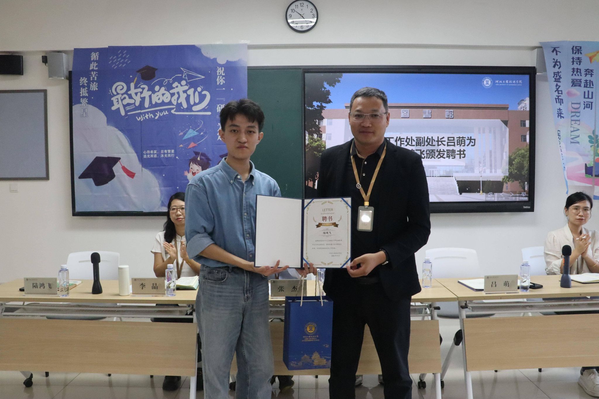 学生工作处副处长吕萌为陆鸿飞颁发聘书