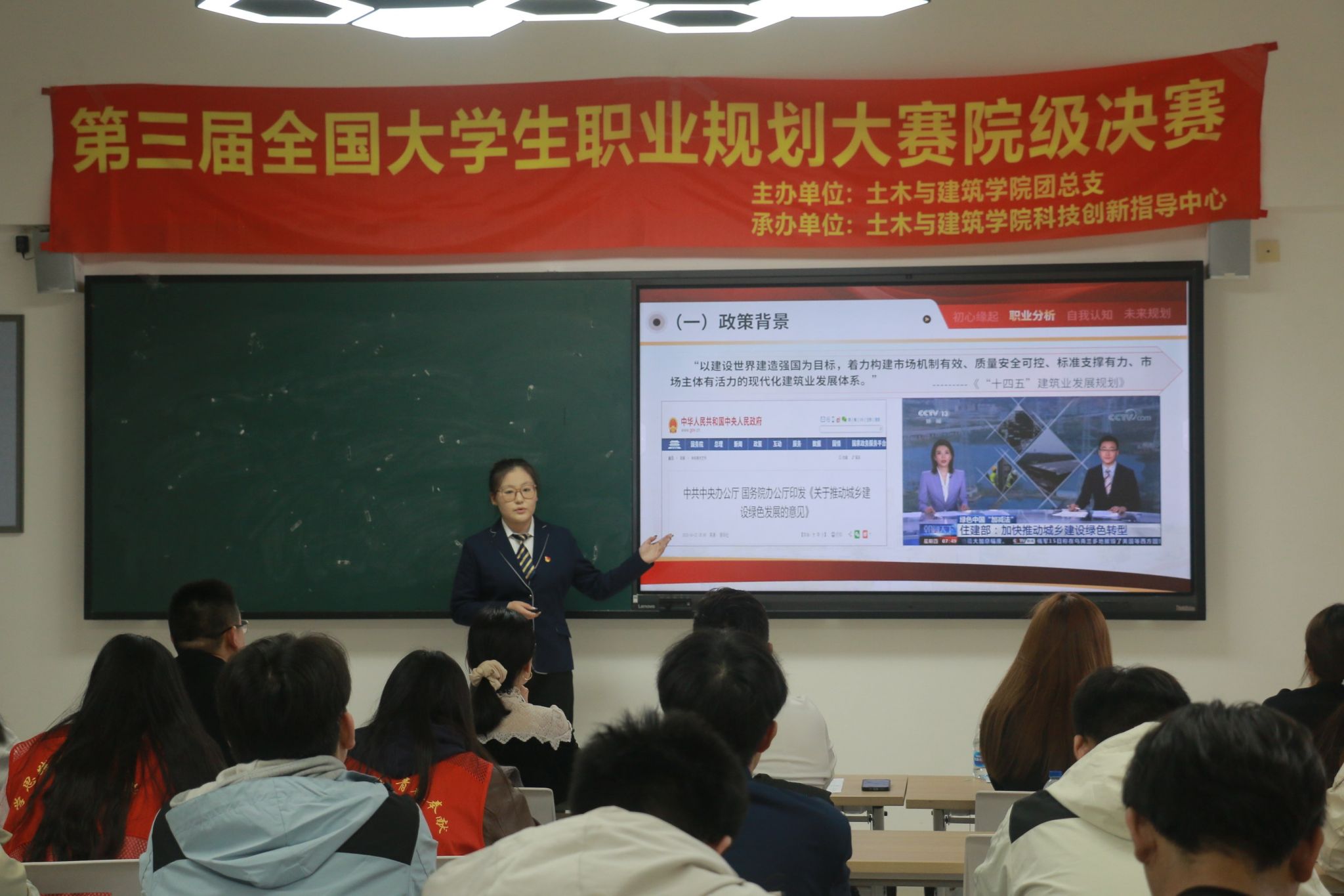 为深入贯彻落实立德树人根本任务,引导学生树立科学的职业观与发展观,提升职业规划能力和就业竞争力,10月30日,beat365正版唯一官网必一第三届大学生职业规划大赛院级决赛正式拉开帷幕。本次大赛不仅为学生搭建了职业探索与自我展示的平台,更为学院选拔优秀选手冲击校级赛事奠定了坚实基础。