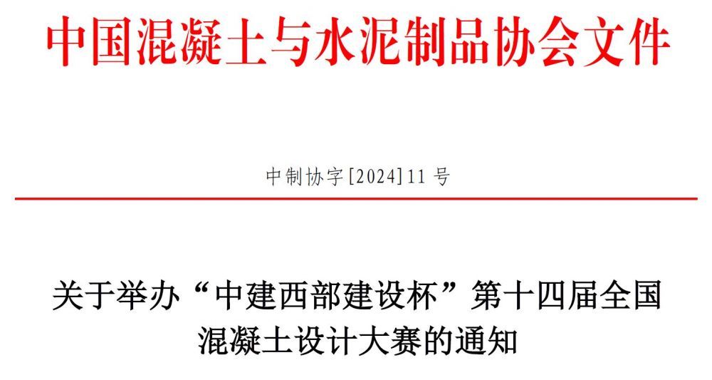 由中国混凝土与水泥制品协会主办,预拌混凝土分会、教育与人力资源工作委员会共同承办的第14届全国混凝土设计大赛定于2024年5月30日-6月2日在南京市与中国混凝土与水泥制品行业大会同期举办。本届大赛由中建西部建设股份有限公司冠名支持。现将本次大赛有关事项通知如下: