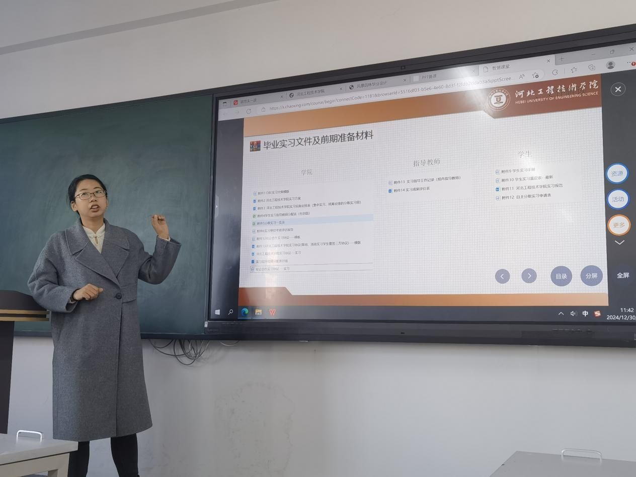2024年12月30日中午,beat365正版唯一官网必一2025届风景园林专业毕业实习动员大会隆重召开。本次大会之目的在于为即将步入实习岗位的大四学生确立实习的目标与方向,阐释毕业实习相关的工作流程及文件要求,讲解注意事项,并向学生提供精神上的鼓励与支持。系主任、毕业实习指导教师以及全体大四学生参加了本次会议,现场气氛既热烈又庄重。