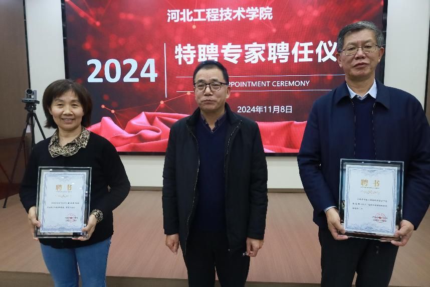 受聘仪式(从左到右依次为专家聂林妹、副校长姜新佩、专家孙志恒)