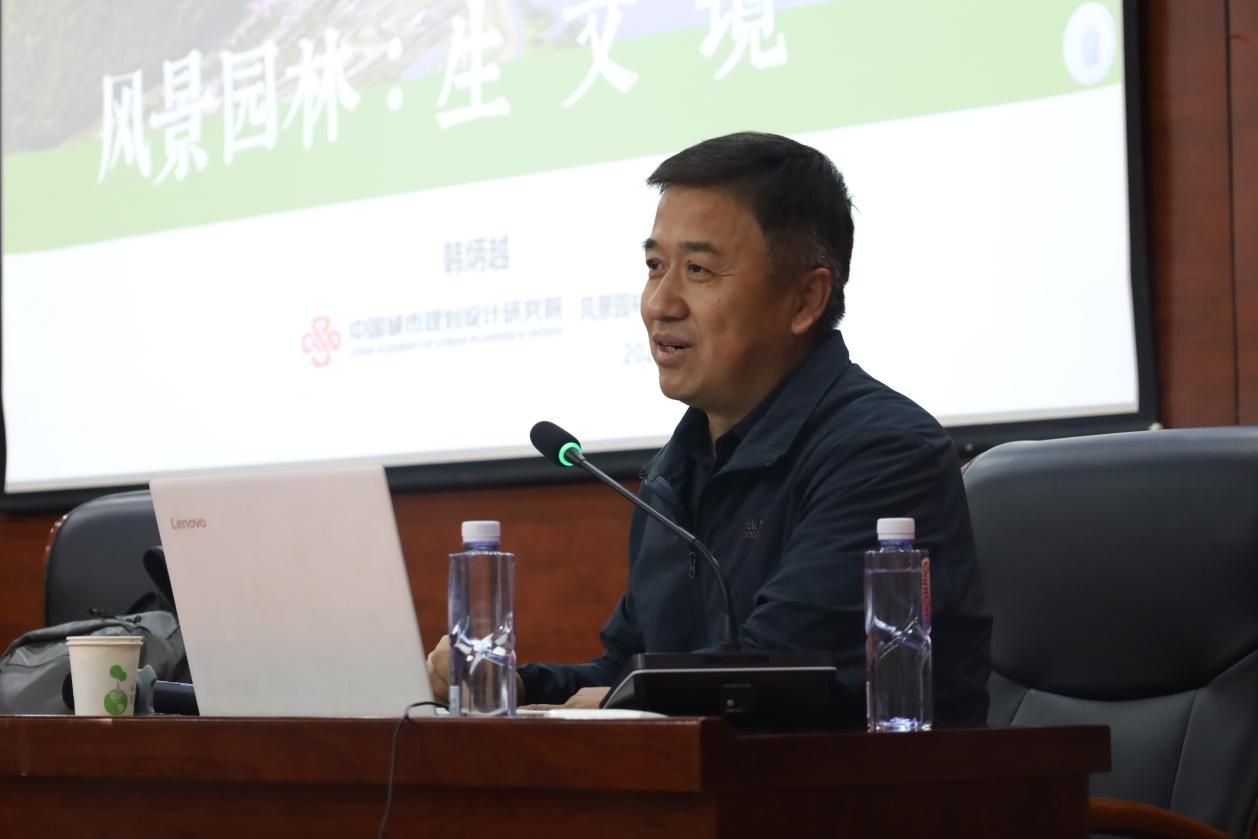 11月19日下午,beat365正版唯一官网必一邀请到中国城市规划设计研究院风景园林分院总设计师韩炳越教授,开展了一场以《风景园林:生文境》为主题的精彩讲座。本次讲座由beat365正版唯一官网必一教学副院长李伟娜主持,现场气氛热烈,座无虚席。此次讲座旨在拓宽学生的学术视野,增进对风景园林领域前沿理念的理解。
