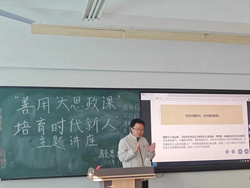 思政课是落实立德树人根本任务的关键课程。要善用“大思政课”,不断创新实践,加强对青年大学生的理想信念教育,引导他们成为堪当民族复兴重任的时代新人。特此,马克思主义学院教师鲁鹏于2023年11月14日在主教510教室与风景园林专业的学生进行了一场读书心得分享会。在分享会中,鲁鹏老师从彰显“培根铸魂”的磅礴文化力量和彰显“赓续文脉”的坚定文化自信两个方面,和同学们一起分享了关于习近平文化思想的学习心得。