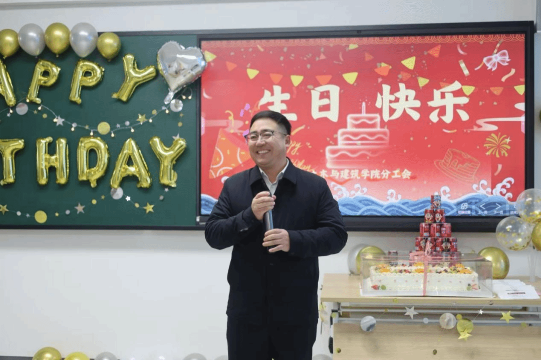张杰院长表达了对教师的生日祝福和新年问候。他强调,学院始终坚持人情关怀,时刻把教职工的冷暖挂在心头。同时他对各教职工在2024年的辛勤付出表示衷心的感谢,并鼓励大家凝心聚力,在新的一年里创造更加辉煌的成绩。