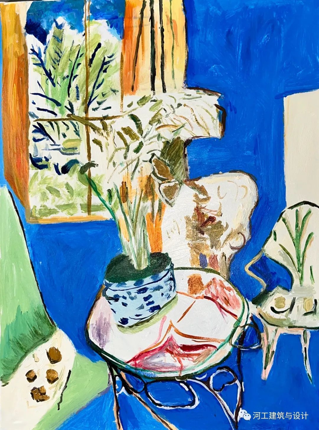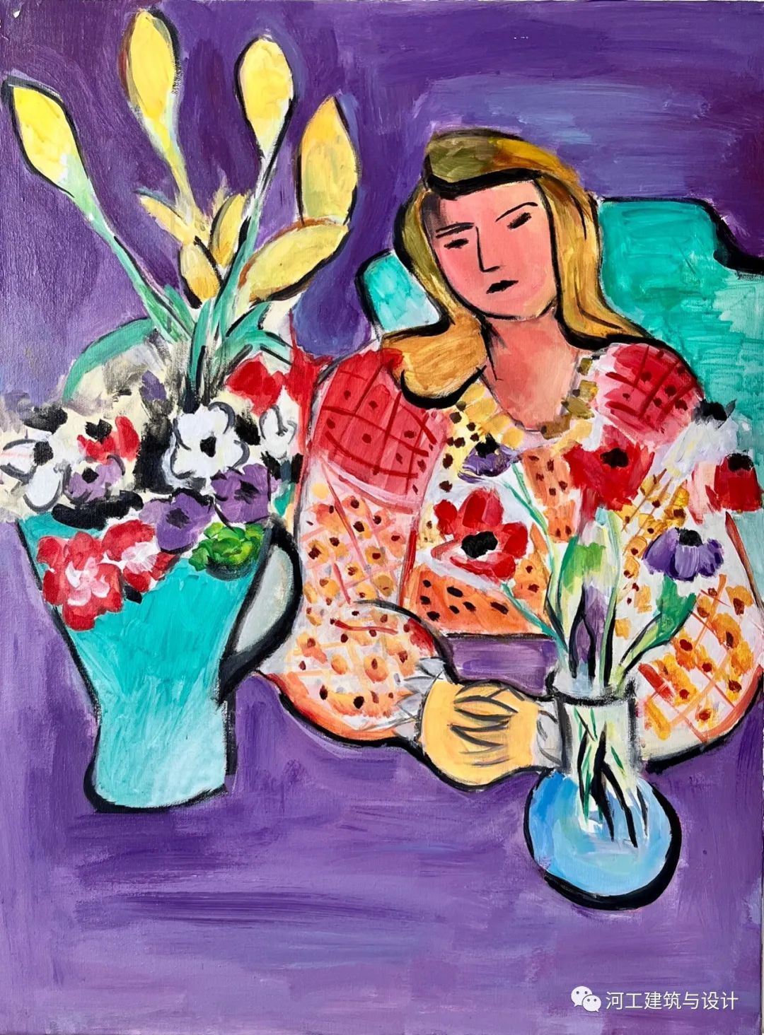 对于视觉传达专业的同学们而言,选择20世纪西方现代主义画家的一些作品临摹,更多的是去学习其大胆鲜明的用色,以及多种色彩间极具和谐性所带来的强烈的装饰性效果。去体会莫罗所主张的:美的色调不可能从照抄自然中得到,绘画中的色彩必须依靠思索、想象、梦幻才能获得的理念。几周以来同学们在绘画过程中投入的热情与精力,令我颇为欣慰。至最后结课时,很多同学非常诧异的问道:老师,这就结课了吗?我还没画够呢……