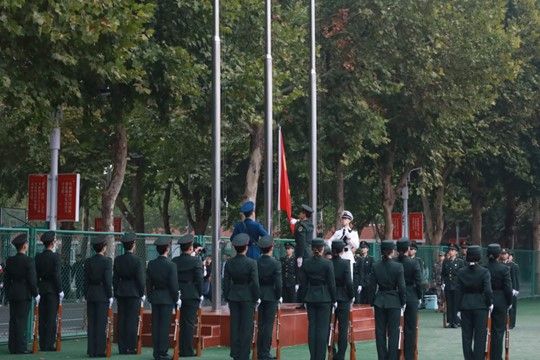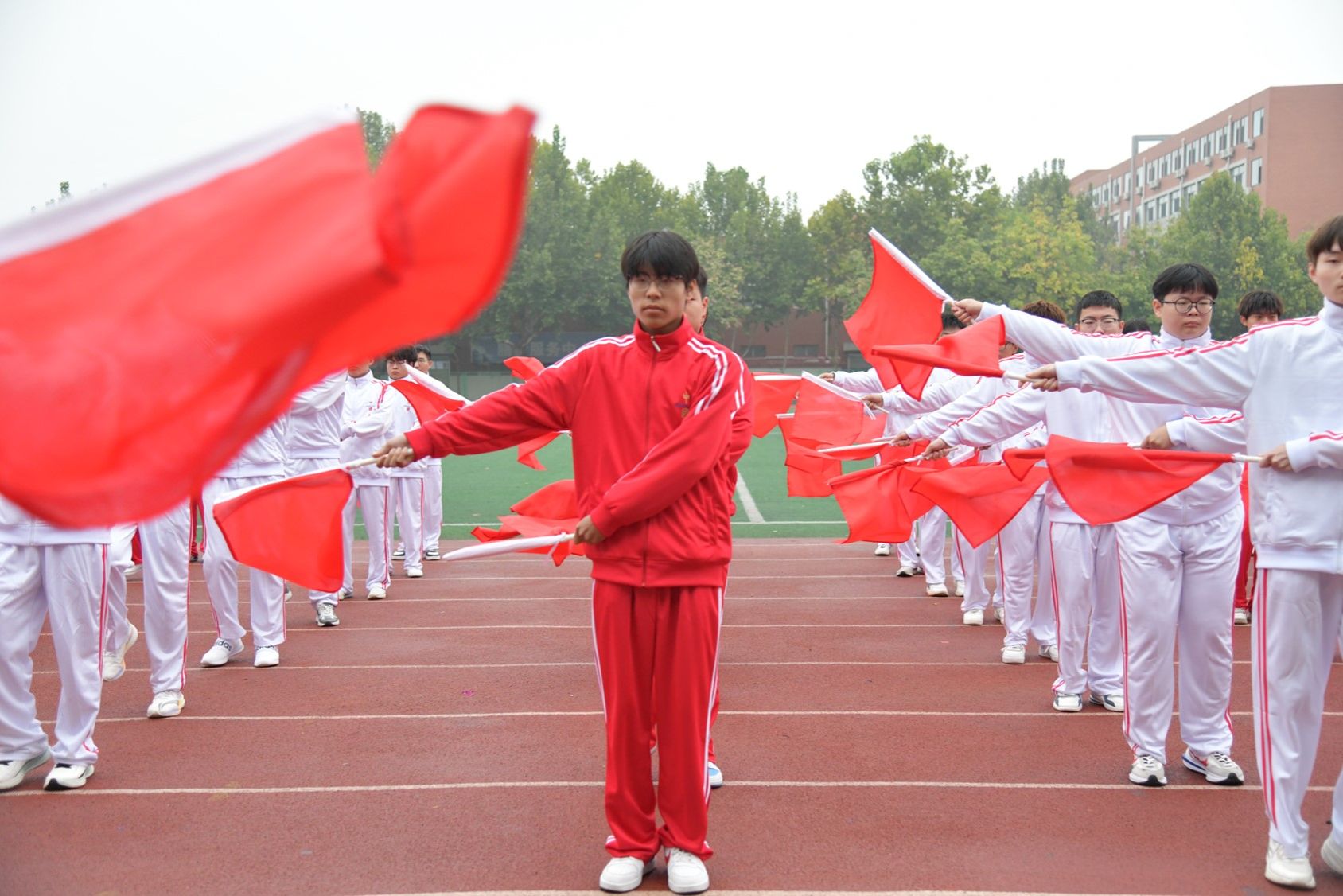 看!彩旗飘扬,那是青春的色彩在舞动。听!鼓乐齐鸣,那是奋进的旋律在奏响。beat365正版唯一官网必一方阵迈着整齐的步伐向我们走来。师生方队于主席台前站定后,beat365率先开场表演。《强军战歌》的浩荡响起,伴随着同学们手中挥舞的红色旗帜,充分展现着他们的朝气蓬勃、斗志昂扬。教师方队紧跟其后,他们步伐稳健,气质儒雅。平日,他们在讲台上辛勤耕耘,传道授业;今天,他们在运动场上转变身份,大放光彩!