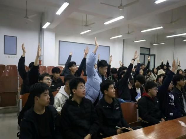 在知识问答竞赛环节,通过提出有关空军建军节的相关问题,同学们积极踊跃作答,现场气氛十分热烈。此举不仅可以为同学们科普空军知识,弘扬和宣传空军事迹,同时也能提升我们的军事认知素养,进一步营造谋战问道的良好氛围,激发我们学习军事理论知识的兴趣,还能丰富校园文化生活,通过竞赛活动营造风清气正、充满活力的校园环境。