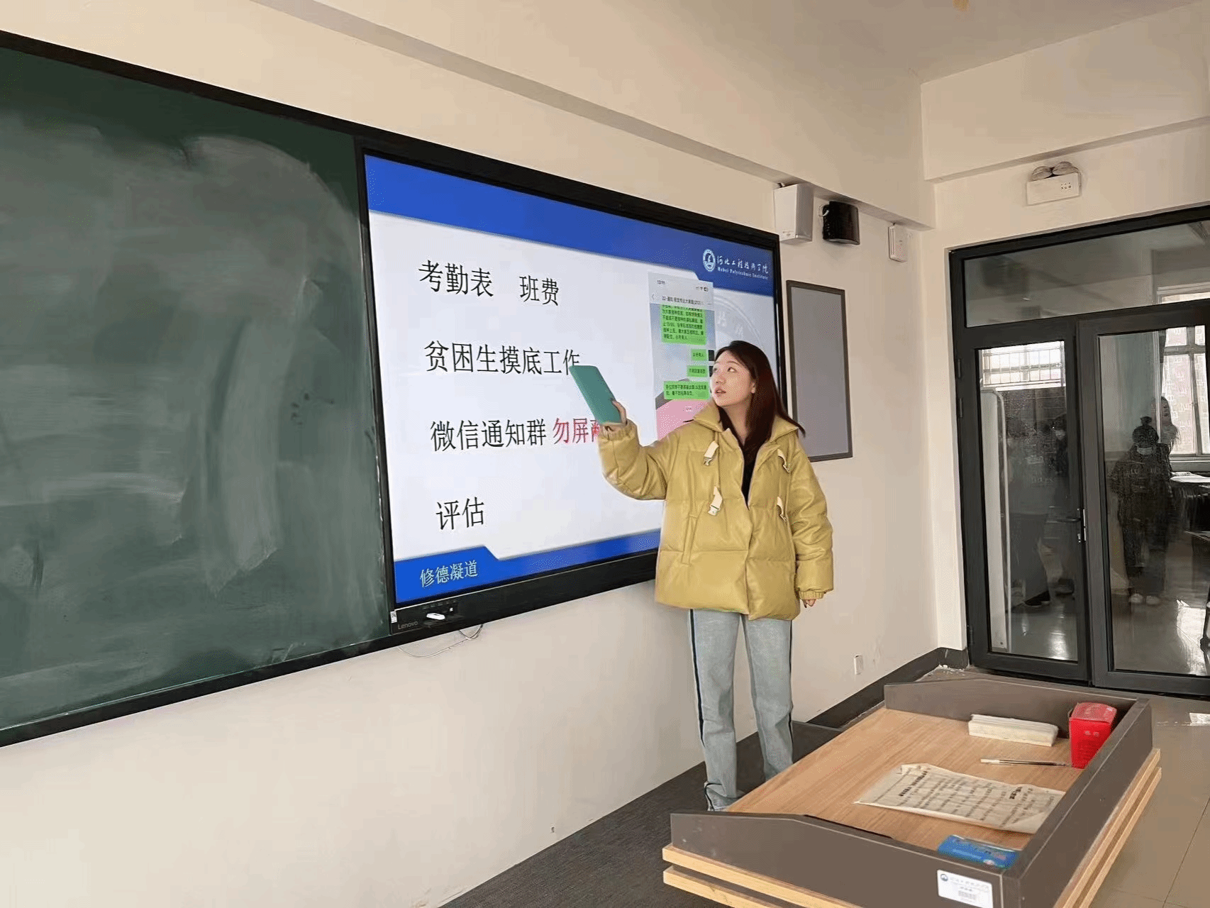 开学第一天,辅导员们就开了新学期的第一场班会。导员们在班会上嘱咐同学们要及时提交作业,做好防护,做自己健康的第一责任人。导员们的一一叮咛,让离家求学的我们也能感受到“家”的温暖,体现着对同学们的思念和爱护。