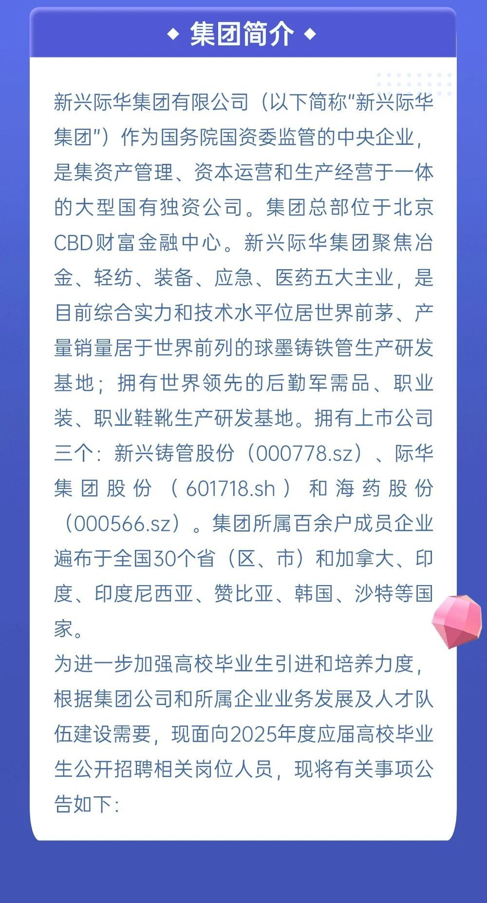 「招聘公告」央企!新兴际华集团2025年校园招聘启动!