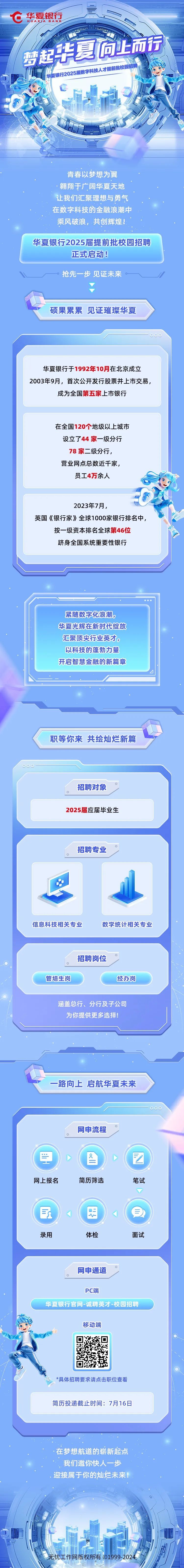 「招聘公告」华夏银行2025届数字科技人才提前批校园招聘