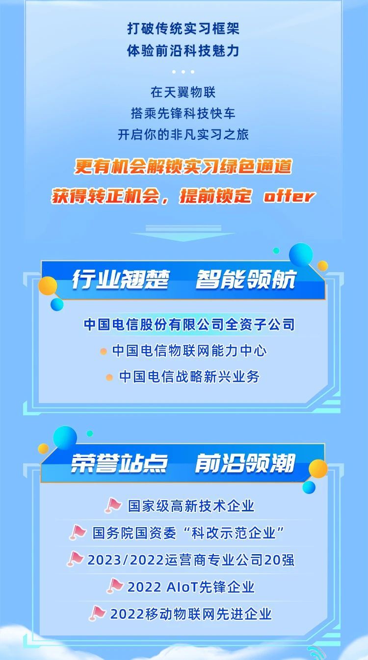 「招聘公告」中国电信天翼物联2025届实习生招聘