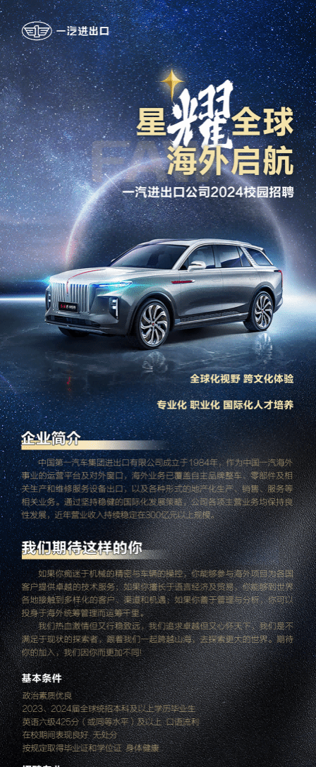 [招聘公告]一汽进出口2024校园招聘