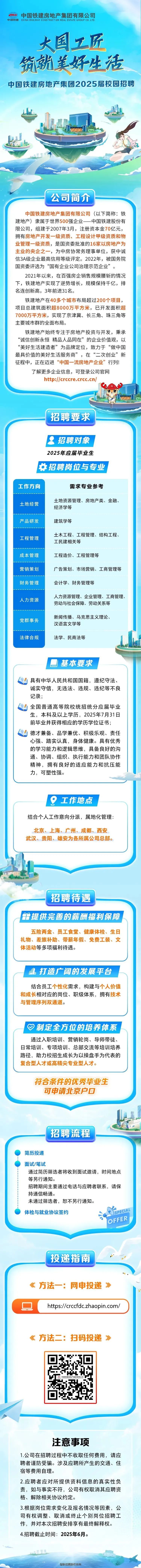 「招聘公告」中国铁建房地产集团有限公司2025年校园招聘