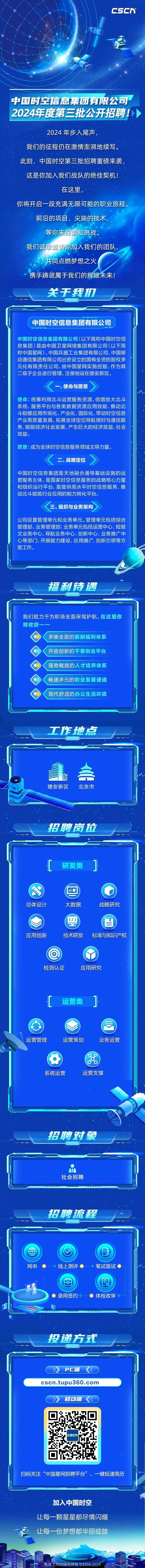 「招聘公告」国企!中国星网 中国时空信息集团有限公司第三批公开招聘公告!