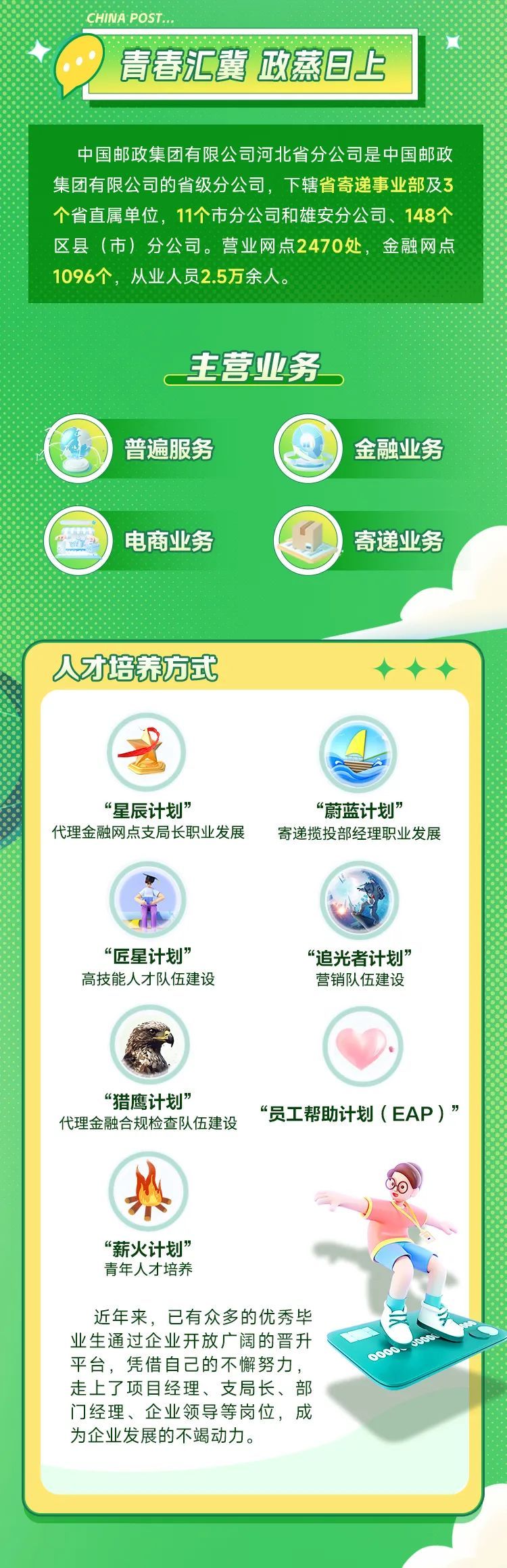 「招聘公告」河北邮政2025年春季校园招聘正式启动!
