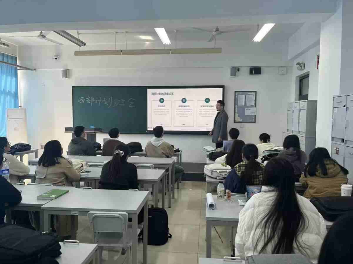 活动在知行楼205举行,吸引了众多学生前来参加。活动现场气氛热烈,学生们怀着对西部计划的好奇和对校友的敬意,认真聆听校友们的分享。校友们结合自身经历,从不同角度为学生们详细讲解了西部计划的政策优势、工作环境、职业发展前景以及个人成长收获等内容。他们用生动的故事和真实的案例,让学生们感受到西部计划的魅力和价值,激发了学生们参与西部计划的热情。