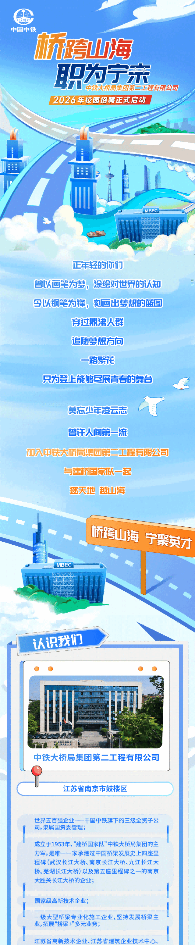 「招聘公告」中铁大桥局二公司2026届校园招聘正式启动!