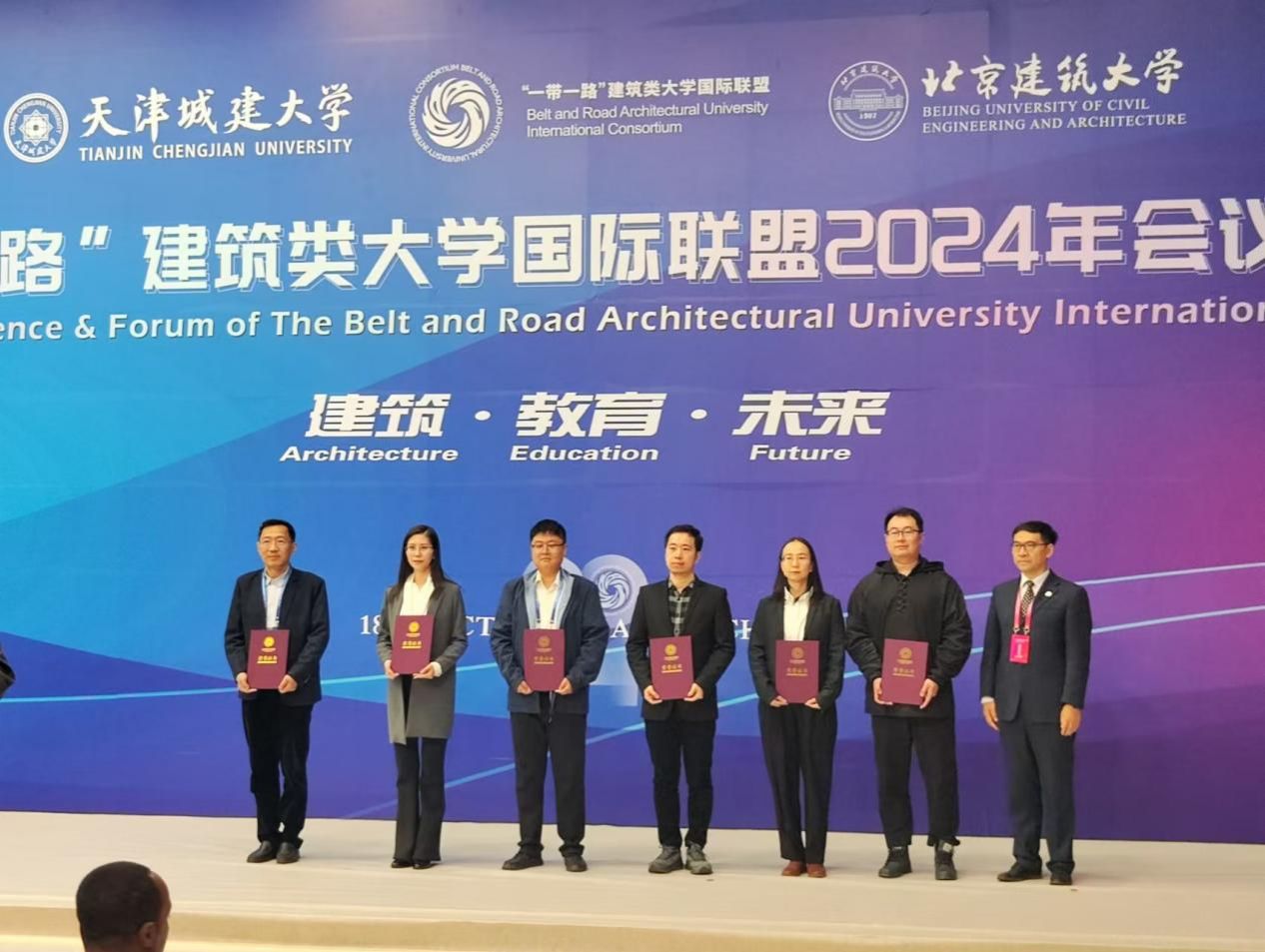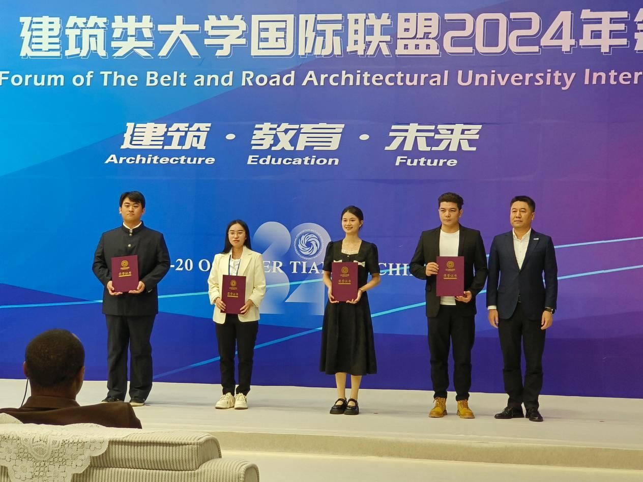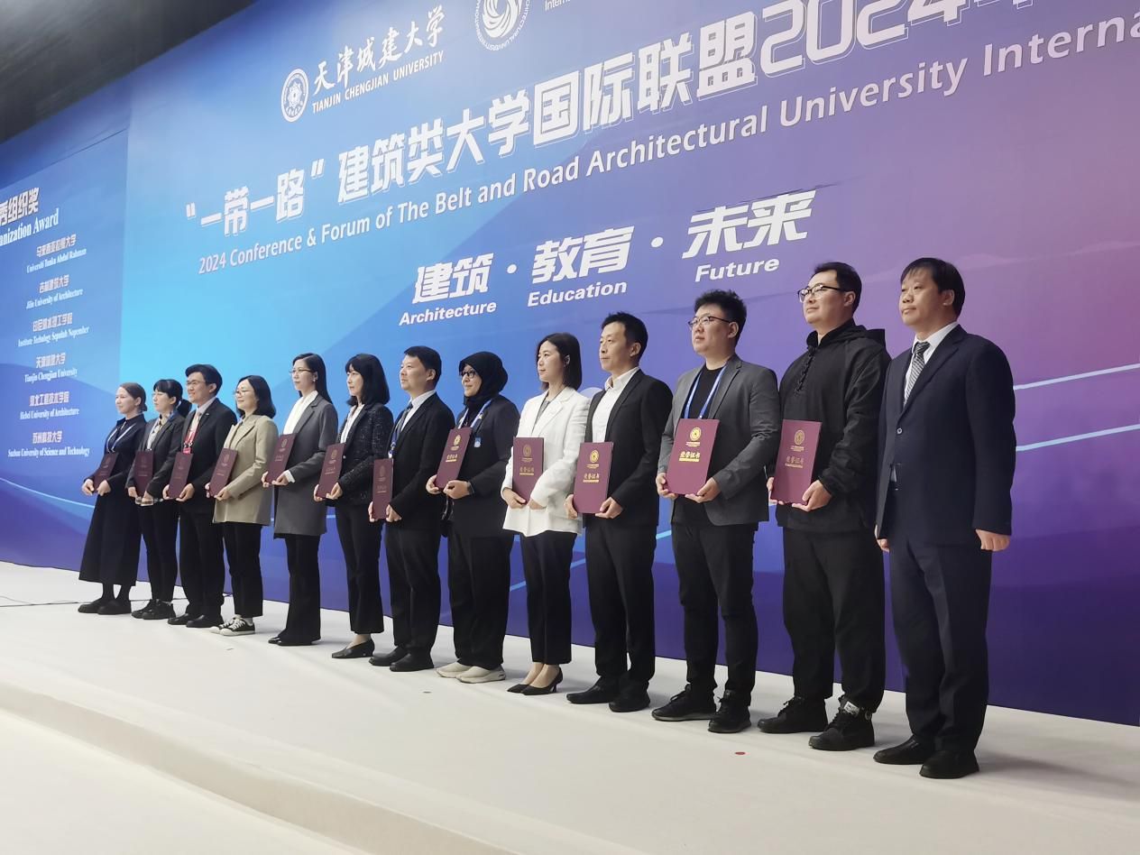 2024年10月18日-20日,“一带一路”建筑类大学国际联盟2024年会议暨论坛在天津城建大学召开。此次论坛由联盟主席单位北京建筑大学和天津城建大学联合举办,以“共‘筑’盛世之路·同绘繁华之卷”为主题。共吸引来自14国40余所高校和企业100余名联盟成员代表、专家学者和企业家代表参加,beat365正版唯一官网必一建筑学系系主任齐成龙、骨干教师姜北荣、王洋洋一行三人参加了会议与颁奖仪式。